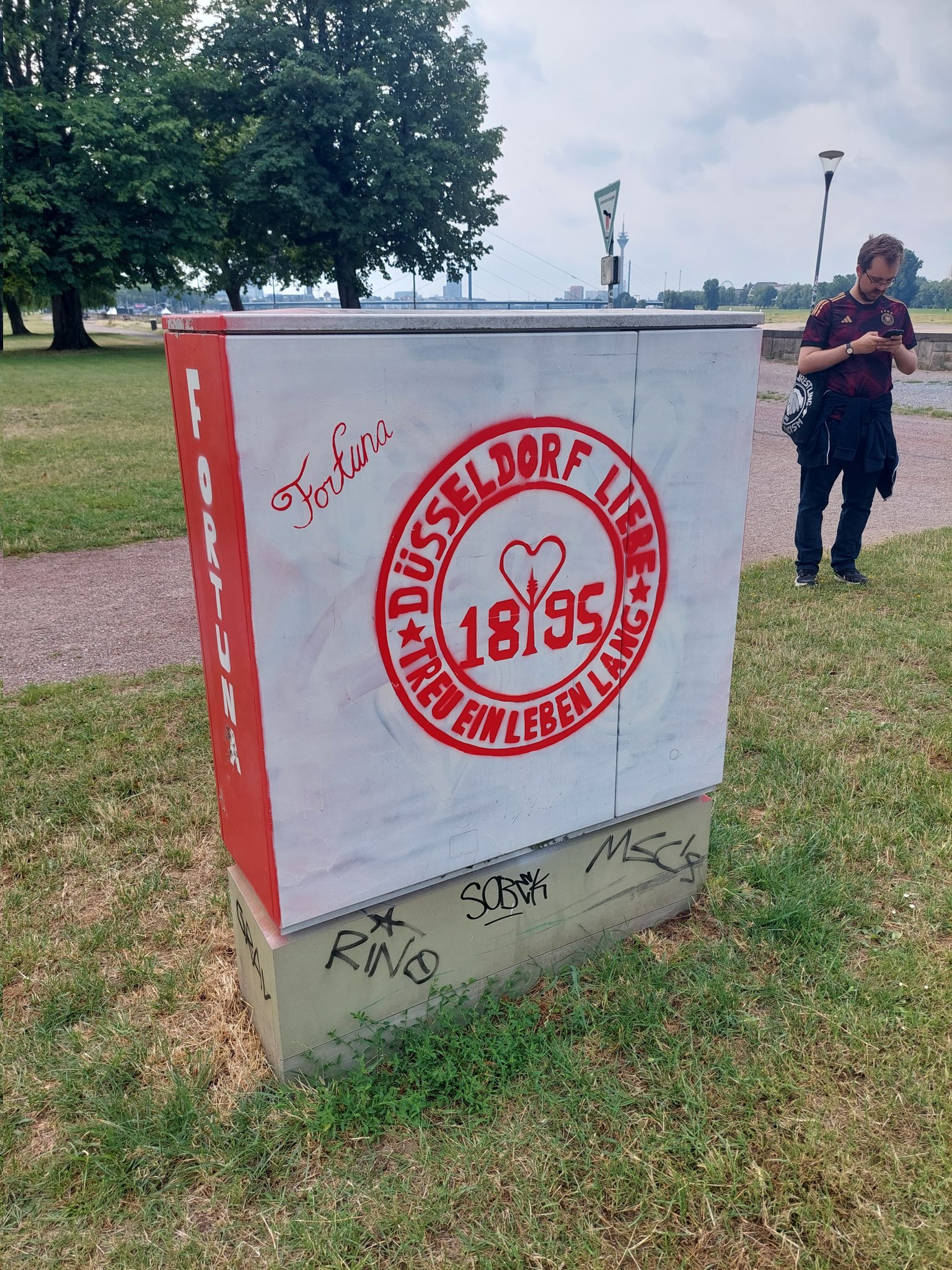 It’s a cracking game, especially for pre-season, and it could have been far higher scoring than it was. Something I’ve not touched on is how Fortuna Dusseldorf fans have turned the city into a red and white wonderland. Almost everything that can be spray-painted red and white has been.