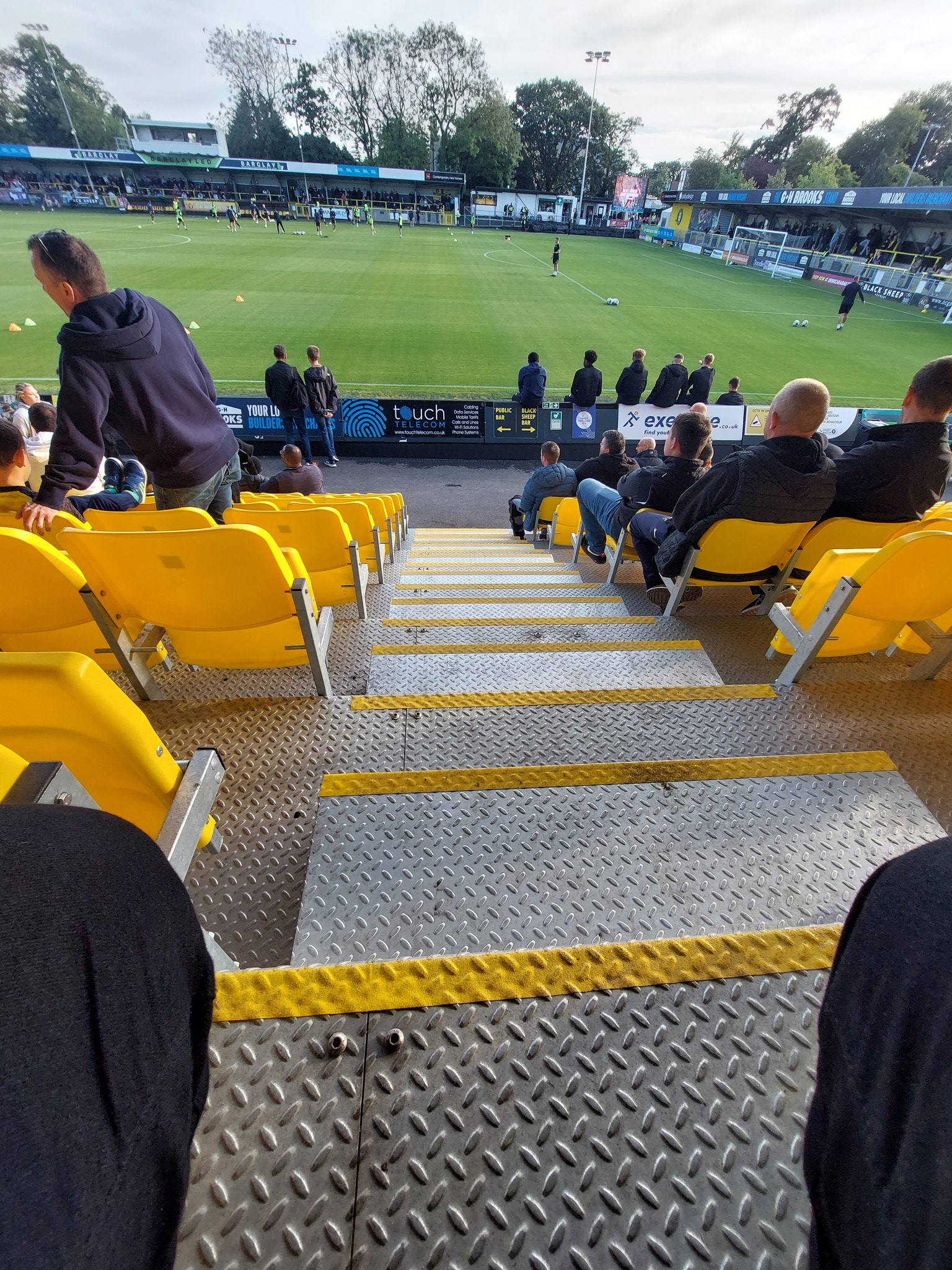 I’ve bought tickets right at the top of the steps, which is ideal because I have loads of leg room, but the leg room is good anyway. The stand feels like one of those temporary stands you see knocked up sometimes but it’s perfectly acceptable.