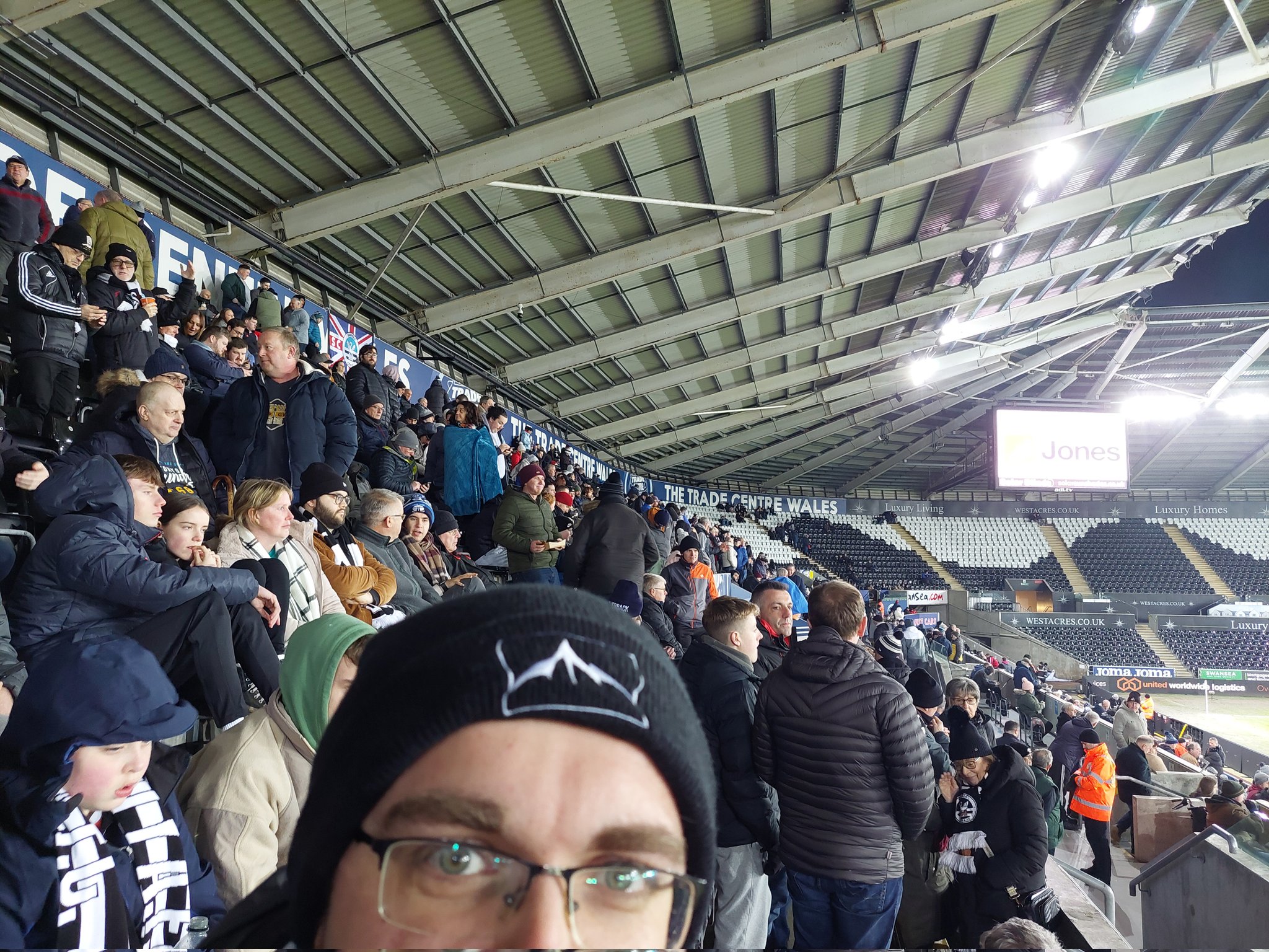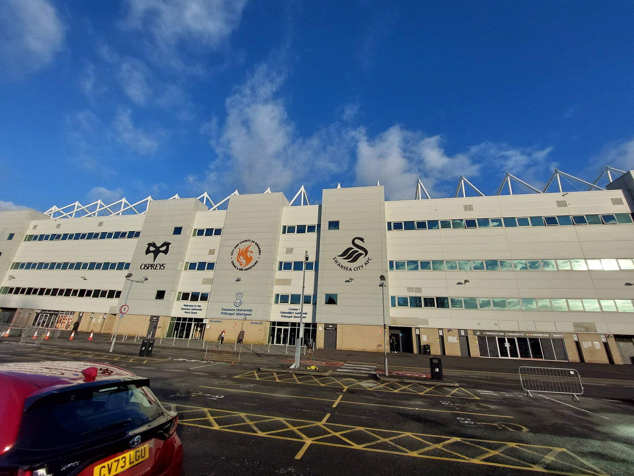 After strolling around, and buying a hat because it’s very cold today, we have seen every side of the ground. This is the most impressive angle of it. Also a reminder that Swansea share their ground with the Ospreys, a rugby team. It does look impressive. It may lack the character of the Vetch, but they’ve done a good job on a modern stadium and it is fit for purpose.