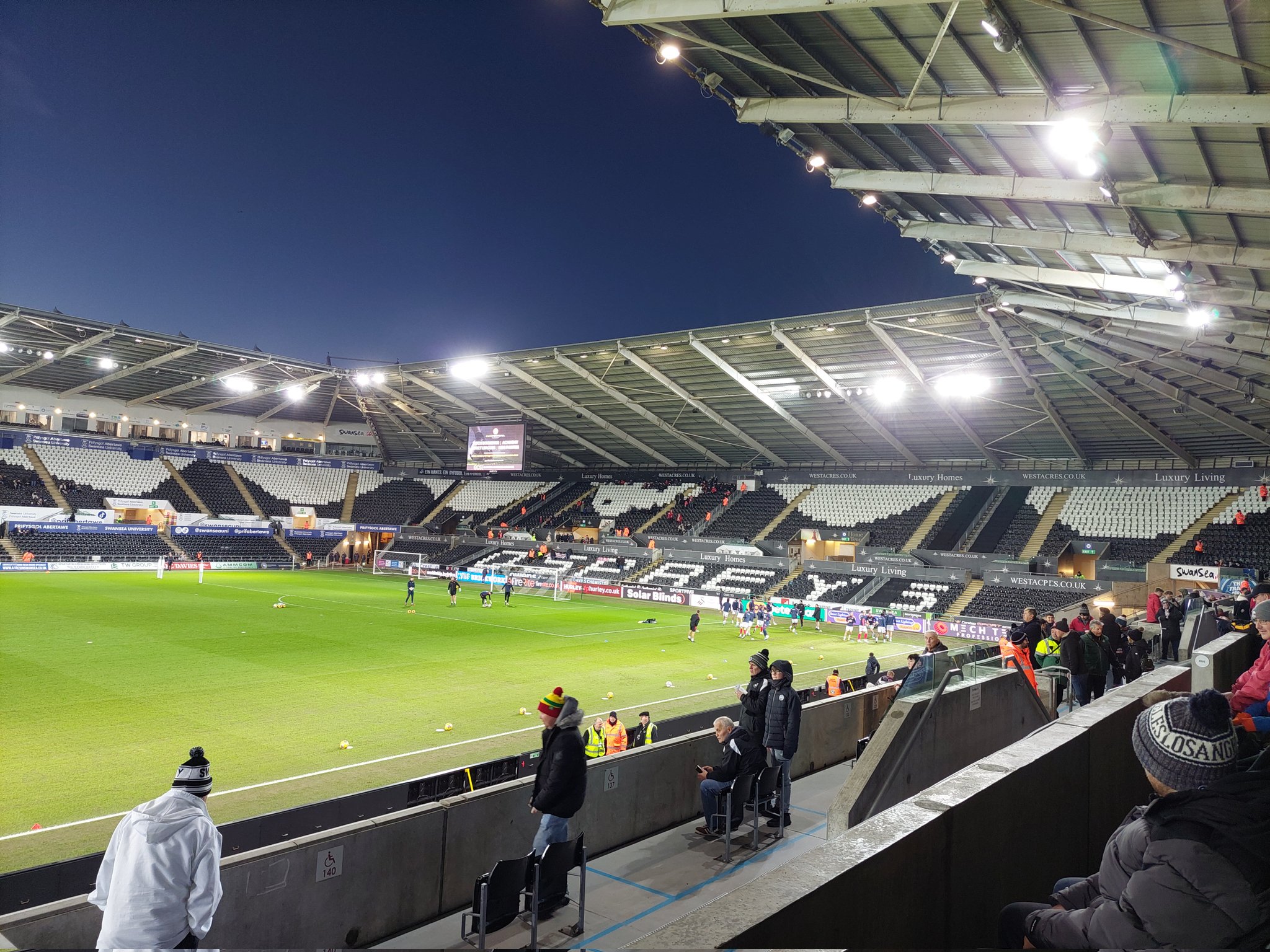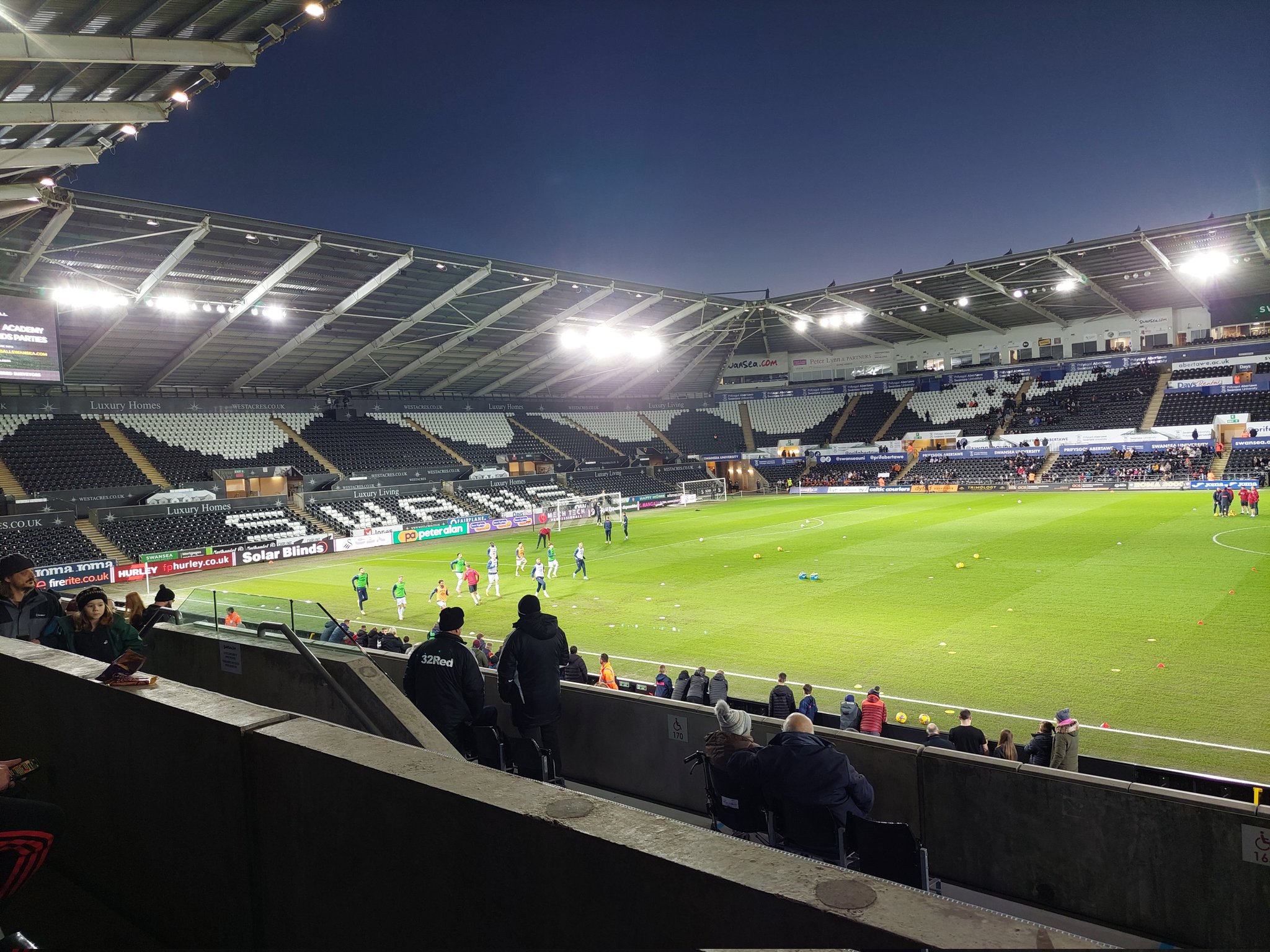 I can’t give them a good score here. It was dead. Morecambe’s couple of hundred drowned out the 7000+ Swansea fans. Almost an embarrassment for the Championship side. *
