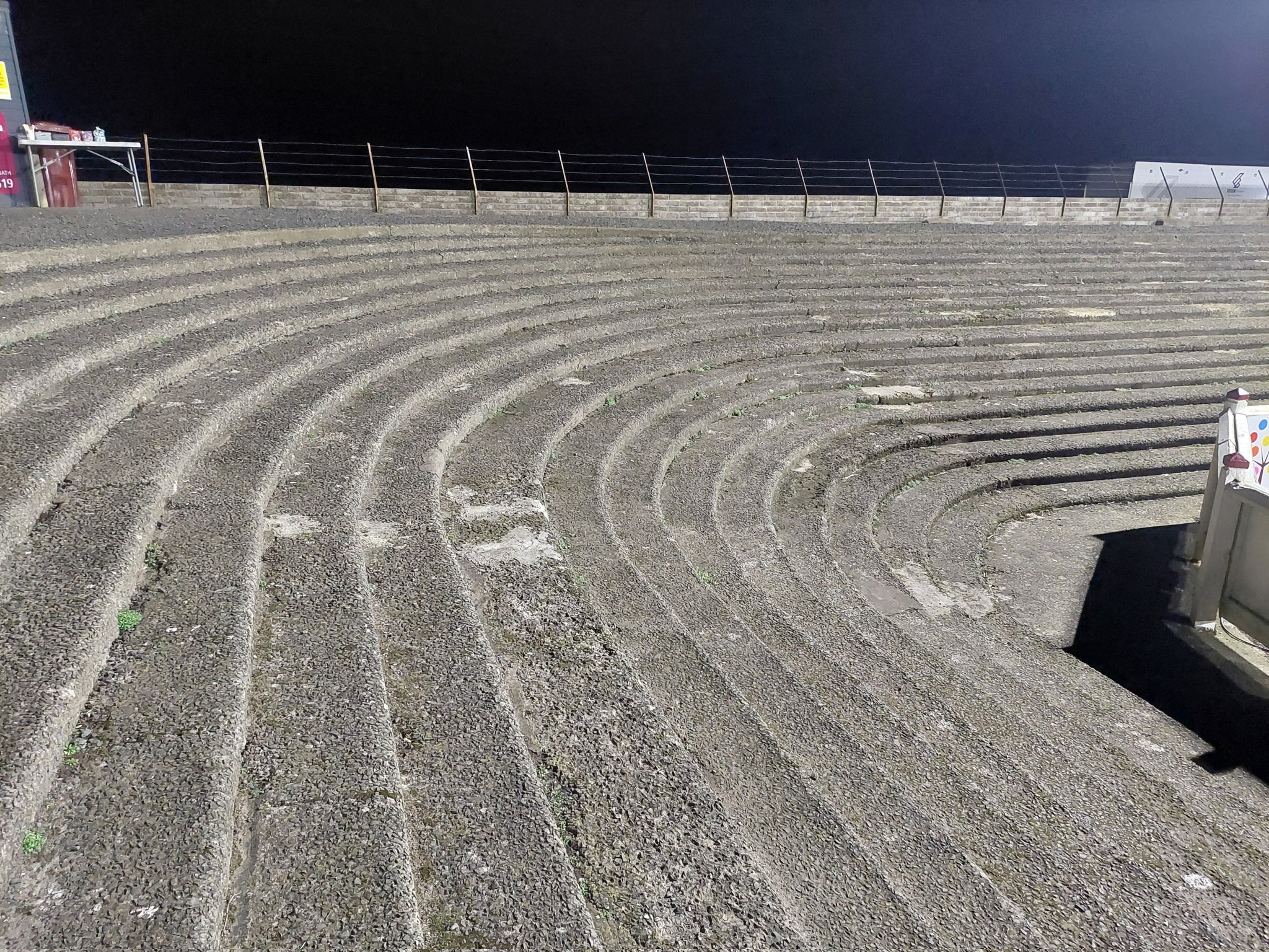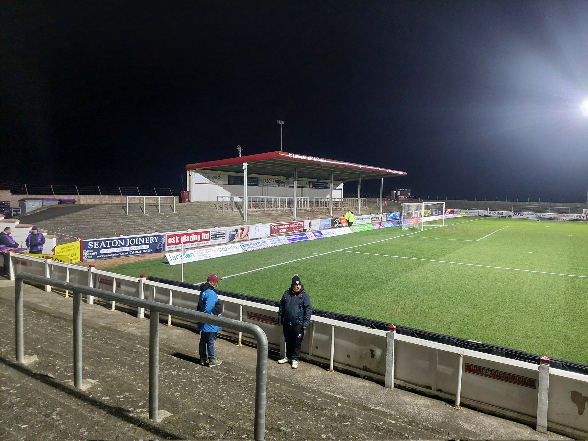 The Ross fans, all 150 of them, are over there in the left hand stand. Yes, that is all of them. They soundly drowned out the home support for a while though. The boarding at the end of the stands was ideal here, as it keeps the wind out. Despite those holes in the corners of the ground, it’s not cold. As you can see I opted for seats in row JJ, the highest possible. It was quite the trek! I guess, I didn’t realise the ground was quite so large.