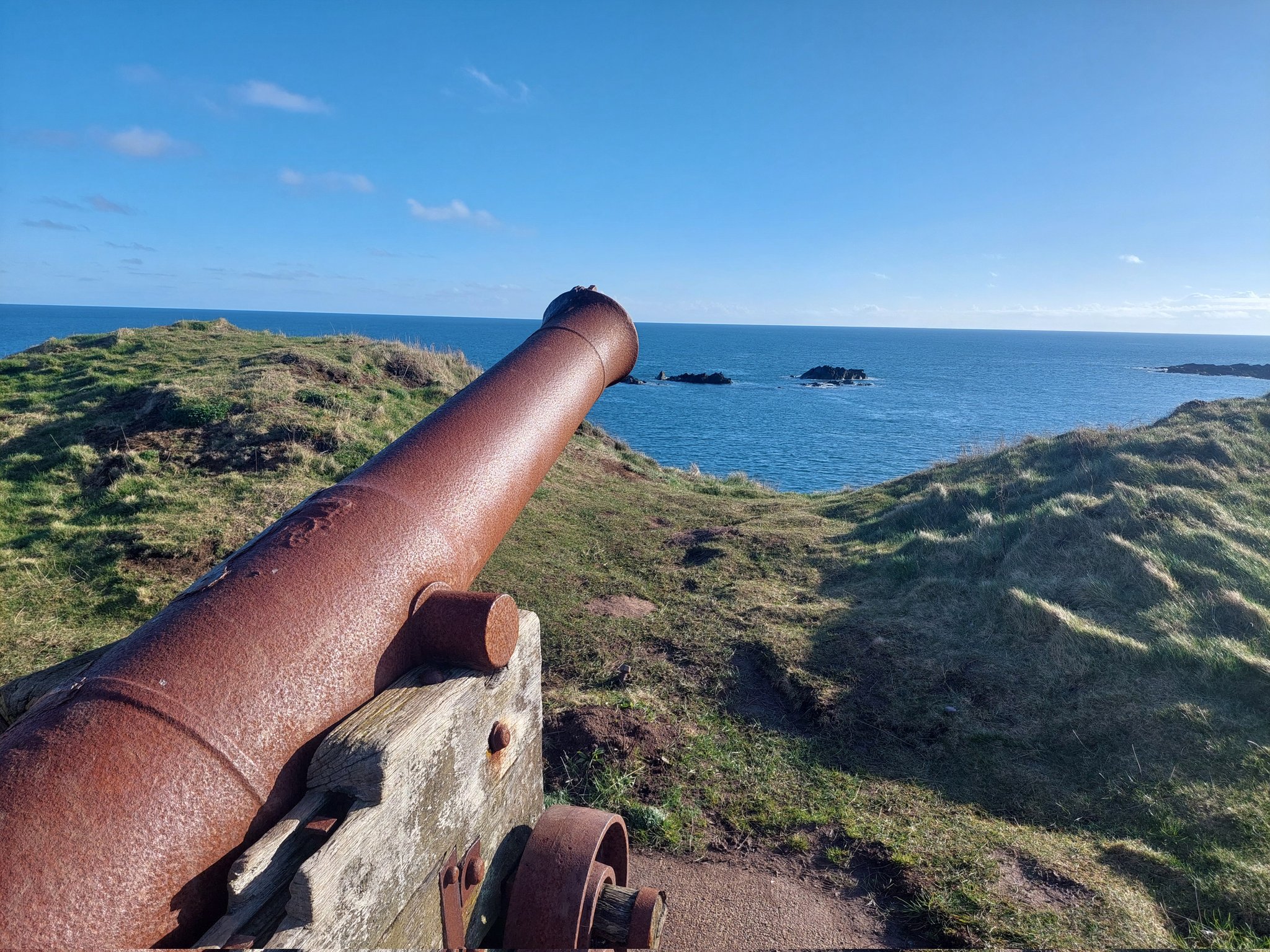 So, I’ve fucked up here. I’ve left my charger in the room. We’ve “checked out”, which involves a dead drop on the keys after locking the door. The door is still locked. There’s no one there. I pop into the neighbouring Tavern and the lady behind the bar grimaces when I tell her I stayed in the Cutty. I ask what time they’ll be back to open up and she says “maybe 2pm. Maybe 3pm. Maybe 4pm”. Ah. Well, I need to be in Edinburgh for Eddie to pick us up at 2pm. While drinking a pint of Belhaven Best and continuing to admire the cliffs, I message the Cutty through Booking.com’s messenger. They do not reply. They’ve still not replied.