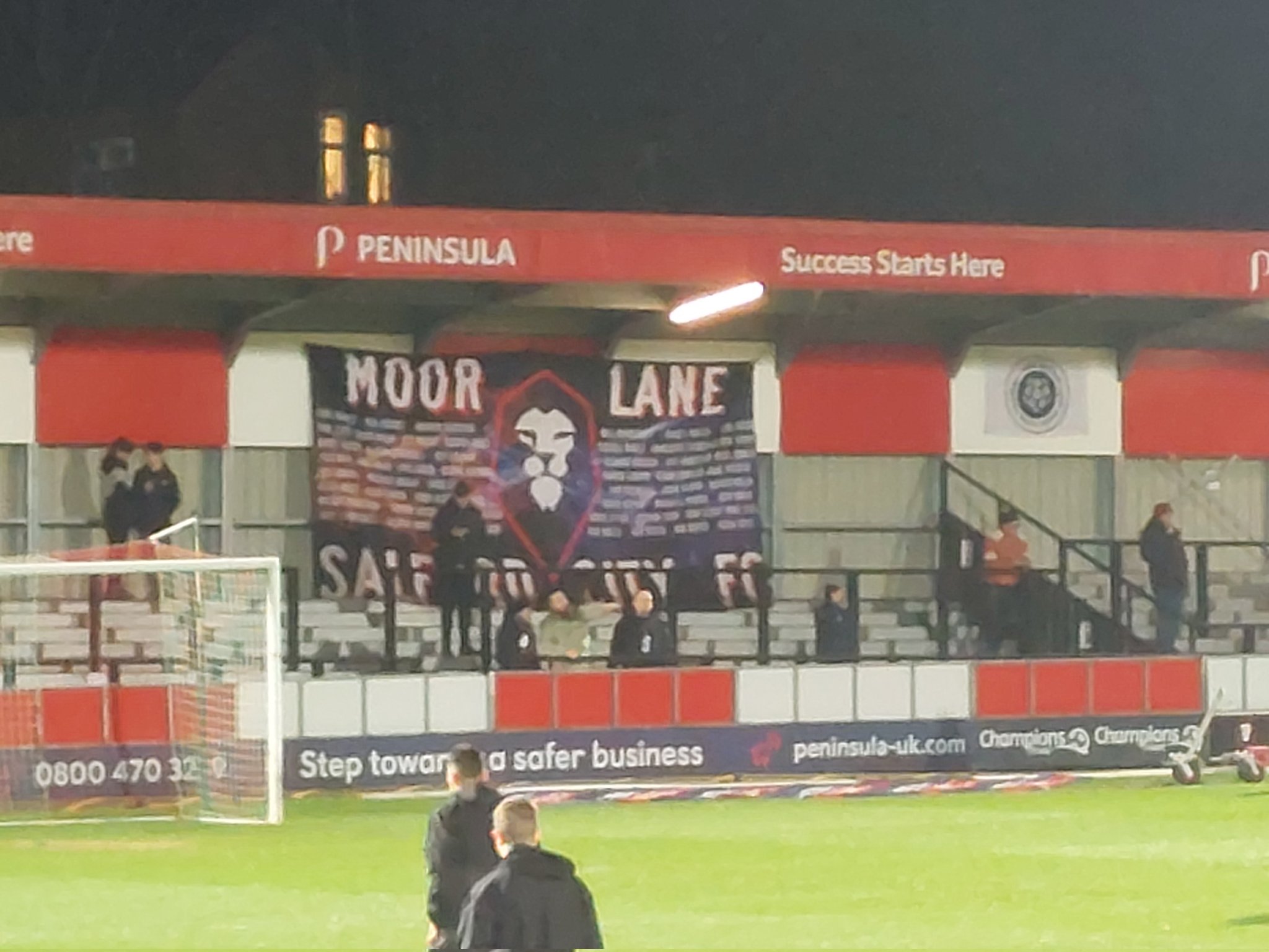 After a short walk to the Peninsula Stadium, aka Moor Lane, we have arrived at this evening’s entertainment. Please forgive me as I switch to Adventures in Football to explain.