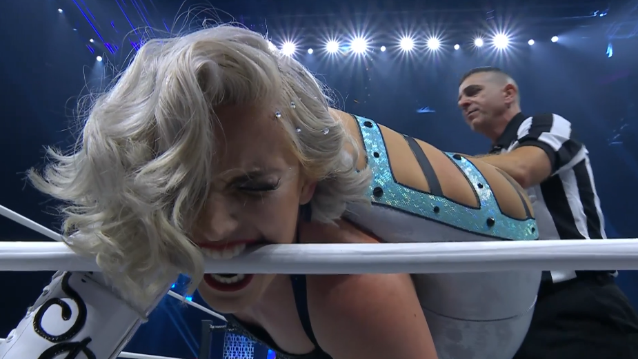 Mercedes is making her in-ring debut for AEW here. She gets an entrance that includes a percussion group from Tron and a can-can line. Mercedes has missed an entire year since getting hurt in a match with Willow. What a year it’s been for Willow too. A year of contrasts.