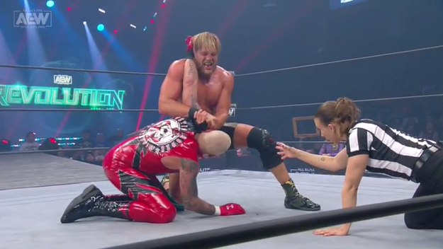 The feud requires a scrap rather than a technical match, which is fine because they both technically suck and are great at antics. The Mox, blind in one eye, storyline allows him to take unprotected shots to that one side. Jericho is not particularly careful with him. The work is really sloppy. I don’t know if Moxley’s eye patch is to blame or whether they just have issues and don’t gel at all. Which is certainly what happened in WWE. The Inner Circle get involved repeatedly, to the point where it doesn’t make sense for the referee to tolerate it. Eventually Hagar, the big dummy, gets caught and Aubrey Edwards ejects the lot of them.