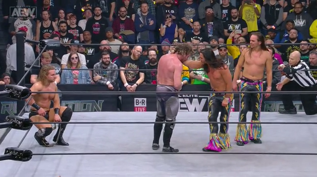 The story continues post match where Page distances himself from the back-slapping and buddying up. It’s a competitive situation. Page teasing the Buckshot and then holding the ropes for Omega sends chills down my spine. The crowd would have supported Page whatever he did here. That’s how over he’s gotten during this storyline. Tremendous pro wrestling.