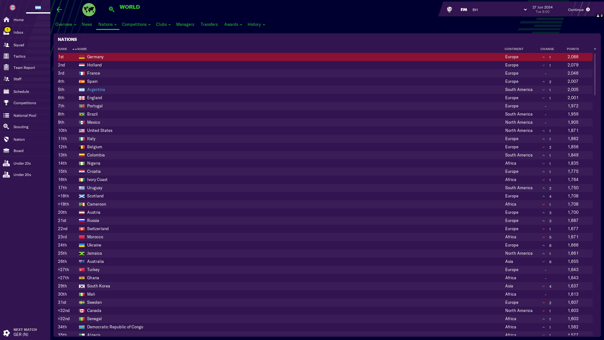 So, hi, if you read these for the #FM content you’re going to love this. If you read them but skip the #FM stuff you may want to hit the back button. This week, we’re going big. I’ve decided to bring you TOTAL COVERAGE of the 2034 World Cup in my FM save, which means the history of the World Cup from a future perspective, introductions to both Argentina and Spain (the two teams I’ll be playing as) and details on every game those two teams play. Until I get bantered out of it before the Quarter Finals and then dryly report that, yes, Germany won again.