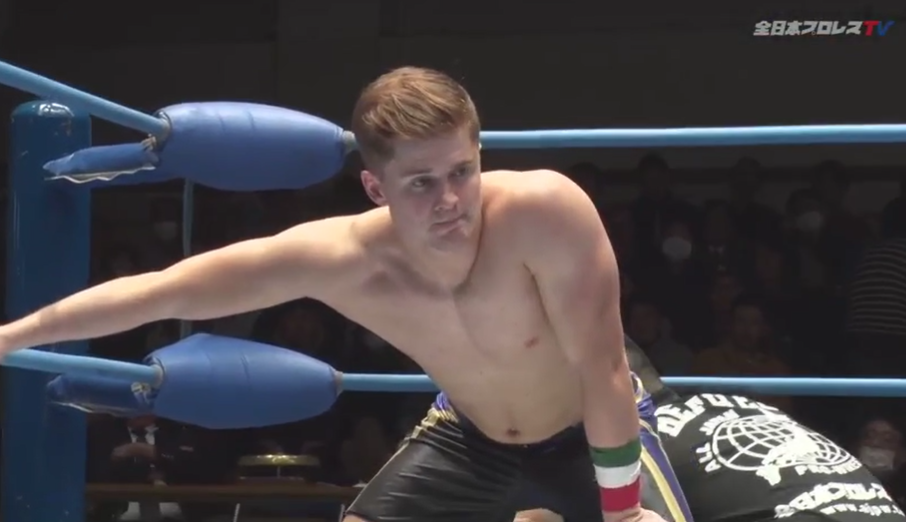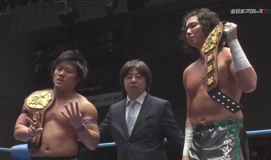 Post Match: Yusuke Okada slides in to make the challenge. That should be a fun match, although like Francesco it may be too soon for a title switch and this is merely part of the reign establishment of Yokosuka. The aim being to give the AJPW kids some opportunities to shine.