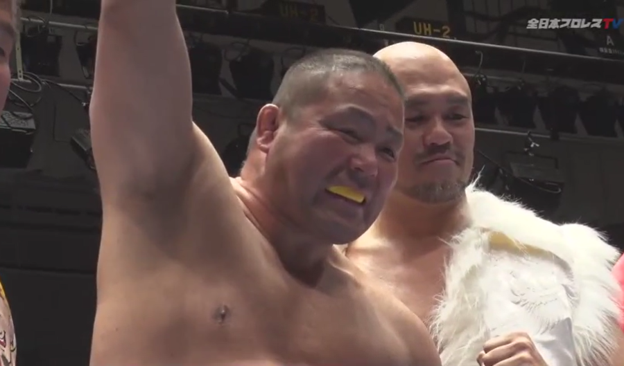Californian monster Kratos is making his AJPW debut here. Possibly replacing Dylan James, who seems to be on the outs with AJPW after an alleged clash with Yakuza in a bar. You may recognize him from Josh Barnett’s Bloodsport shows. Unless you watch a lot of All Pro, Supreme Pro or Gold Rush out in California. To say it’s a bad debut would be an understatement. He has continuous communication issues, along with awkward pauses, and drops the one lad on his head. It quickly goes from ‘this guy could replace Dylan James’ to ‘we hope this guy completes the tour without killing someone’. Aside from that it’s a nothing match. Okada gets the pin and we move on.