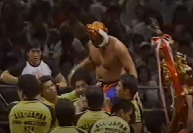 Tenryu still has his belt but it’s not on the line here. Choshu is here ‘invading’ from New Japan. It’s an angle that got so hot that WCW stole it, turned it into the New World Order and then that stable and angle bled back into Japanese wrestling.