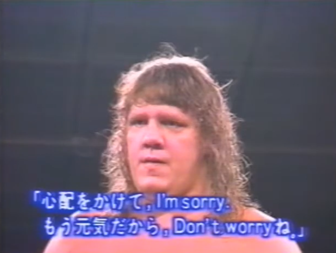 Embry definitely tries to work like he’s an AJPW regular here. Which means he doesn’t stand out at all. I was expecting him to be a sore thumb worker. It helps he’s working the Fantastics, who play the Southern babyface card. Charland gets pinned with the commentator going nuts. “COUNTATHREEEE, COUNTATHREEE”. Mate, it’s Richard Charland. **½