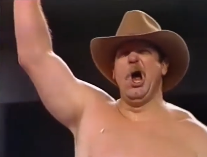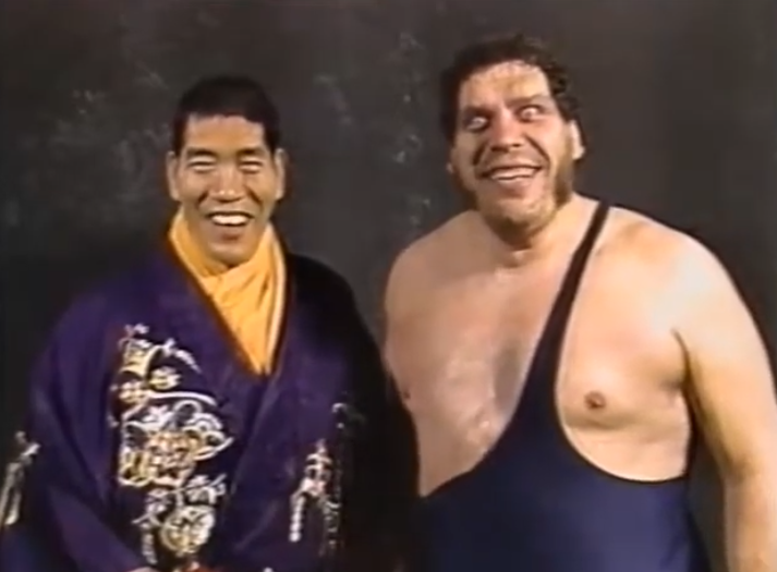 I glance away briefly and am welcomed by this sight on my return. What the fuck Andre? Unfortunately, Andre and Baba, the tag team, was a thing in 1990. It is not pleasant.