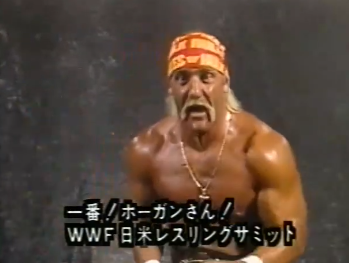 Video Control gives us clips from Wrestlemania III and Hogan cuts a promo. “Whatcha gonna do when Hulkamania and Ichiban run wild on you”. Nice to see his grasp of Japanese is as strong as his grasp on the truth. I can’t believe All Japan are hard selling me a WWF crossover show.