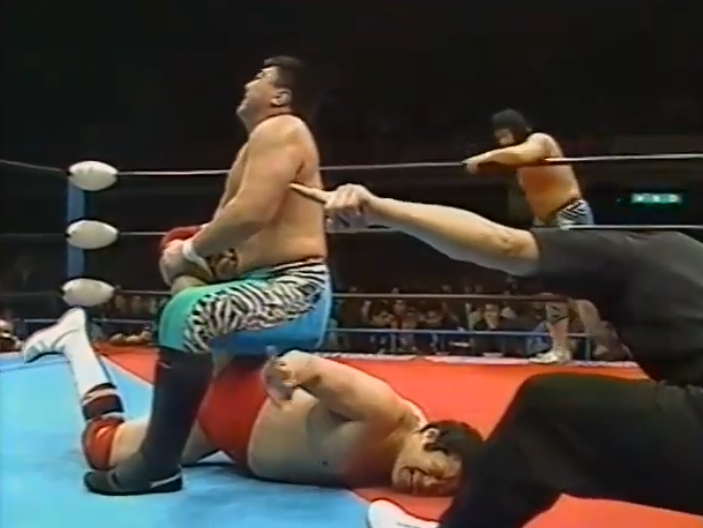 Kabuki stomps on the ankle, so it feels like a work. Jumbo gets on that ankle and Tenryu gives up! Holy shit. What a fantastic angle this was, although the ankle probably needed more attention before the actual submission. Tenryu, in selling the injury, would miss the following two tour shows. ***¼. Just very good stuff all round.