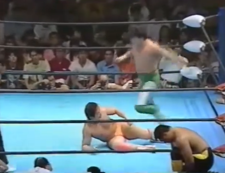 Probably should have saved Taue for this match. Mighty Inoue is weak. Fuchi is fine to absorb heat. You shouldn’t have two weak links in a trios team. As a result, the match lacks the raw energy of the recent Misawa-Tsuruta stuff. We go from heat on Fuchi to heat on Inoue. Things pick up when Kikuchi is isolated. He’s so good at taking an ass kicking. Although, the same issues remain. It’s a sluggish match because they’ve done the same thing three times instead of mixing it up. It didn’t even have an opening shine.