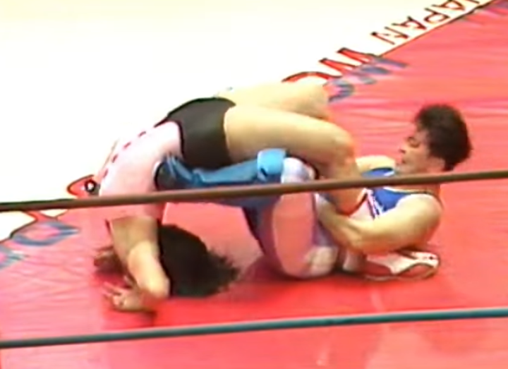 This is an early career clash between two of the greats. Toyota is already flexible and graceful, and Hokuto is a great athlete, coming from an athletic background. When I call Manami flexible, I mean Akira puts her in a half crab and her foot is nearly touching the back of her own head. Hokuto pulls out some evil looking stretches. Hokuto has this bridging suplex, which starts out like a slam, but she then throws her opponent over her head and bridges with it. Twisting as she falls backwards. It’s very cool.