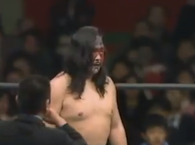 Kabuki’s blood is everywhere. Misawa is covered in it. Just when I thought the match couldn’t get any worse, they do a ref bump, with Misawa looking around for the ref before he ran into him. They have an even worse finish where Fuyuki jumps in to break up a Misawa pin to complain that Kabuki used a fist, and the match is thrown out. That’s a lot of bullshit to deal with.