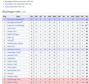 I’ll never forget this. Wycombe were the best team in the league, by miles. Managed by Martin O’Neill and boasting non leagues top players; the likes of Keith Scott, Steve Guppy (who played for Leicester and Celtic later on) and Dave Carroll. Everyone else got smashed by Wycombe in 92/93. Until Mark Whitehouse smacked home a clinical finish and I got to yell abuse at a famous manager from mere feet away. A 16 year old’s dream come true. The ground was packed with 3675 in. This is the high mark of being a Rovers fan. We knew we wouldn’t win the league and even if we did, the ground wasn’t good enough to cut it at league level. There’s only one stand you can actually sit in and the pitch isn’t flat. Beating Wycombe, a clear league team in the making, and doing so in strong fashion proved we were good. We were in the Conference to stay!