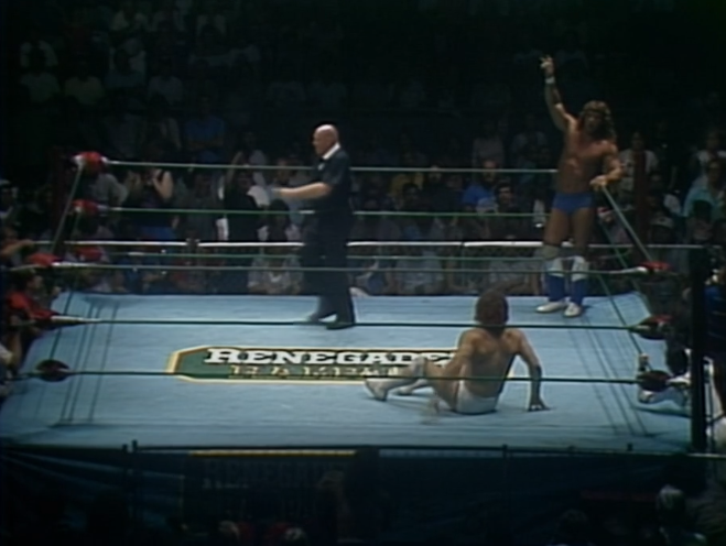 Adonis is in his third match here, facing current AWA champion Jerry Lawler. He beat Curt Hennig back in May with Hennig on his way to the WWF. Lawler wins with a punch. Adonis not deserving of the piledriver.