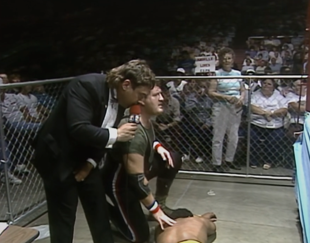 We get a word with Stanley Blackburn (BOOOOOOOOOOOOOO!) the onscreen authority figure of the AWA. Boy, has he aged in the last couple of years. Vince McMahon’s expansionism certainly took its toll on some people in the territories business. Blackburn talks about the assorted other promotions being involved in Superclash III. Including World Class, CWA and promotions from other countries.