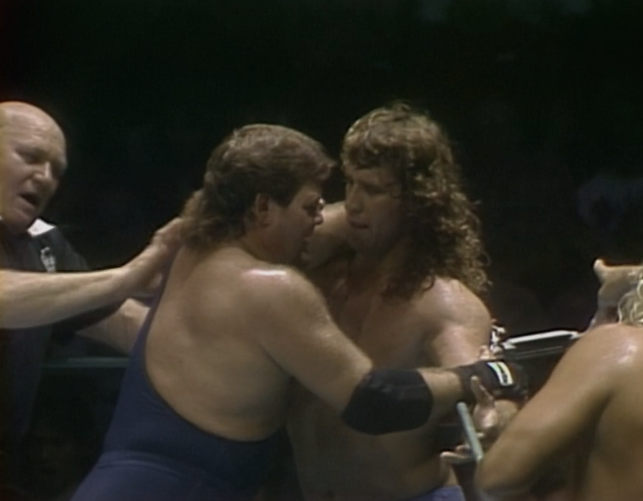 I feel bad for Foley, having to work a match with Ricky Rice. Mick is really young here, having debuted in 1986. He looks awkward but has a look and style that sets him apart from everyone else. Jarrett has learned how to throw punches from Lawler and is over because of it. Rock N’ Roll Express did not bring their work boots for this one, sadly. John Paul is forced to take the heat segment while Morton stands on the apron looking disinterested. RNR vs Badd Company looks like it could have made some money for the AWA based on this. Morton trips up Pat Tanaka and Gibson gets the pin. As if they jobbed out Pat Tanaka when they had both RPMs right there! This was ok but the heat segment was dull.