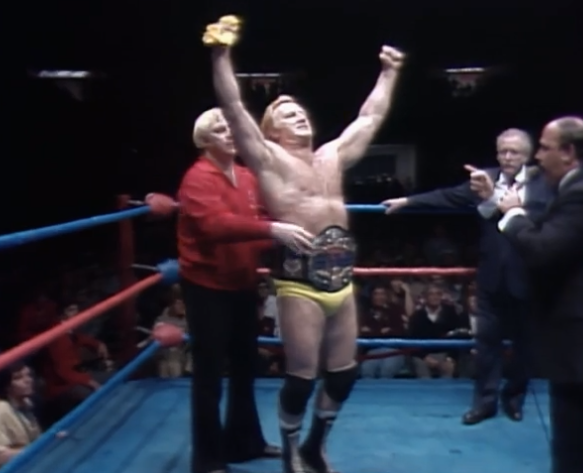 Everyone goes home happy right? Nope. Stanley Blackburn overturns it for an over-the-top rope DQ. The fans are mad as hell and start throwing their trash at the ring. If your crowd is chanting “bullshit”, that’s bad, Verne. Hogan, sportsman of the year, beats up Heenan and waffles Bockwinkel with the belt. He stops short of dragging old man Blackburn into the ring and beating the piss out of him too. The match was bad. There’s a lot of Hogan looking lost.