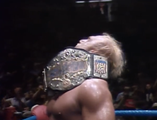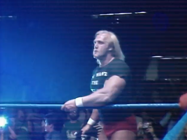 Hogan is riding high off the success of Rocky III (1982) and comes out to “Eye of the Tiger”, unless you’re watching on the Network and then he comes out to piped in generic noise.