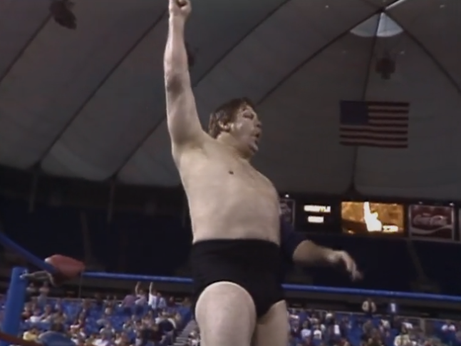 Brody vs. Snuka is a decent match up. Brody willing to take Snuka’s big moves and heavy chops. Snuka, despite clear crowd blood lust, refuses to blade or come off the top of the cage. The Barbarian, by the way, is not the Barbarian but rather John Nord. Brody accidentally dropkicks Nord and Snuka pins him for the win. This was ok. Too much Greg Gagne though.