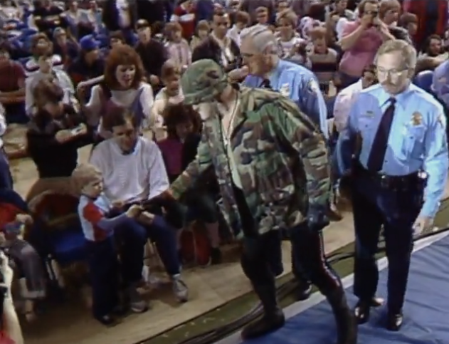 Kamala’s offence is routinely boring, and he pinches the armpit. Rod calls it “axilla” and I learned a new word. Fair play, Rod. Kamala is running the whole ‘dumb savage’ thing where he pins the guy face down and assorted other nonsense. Sarge routinely used a clothesline around here as a finish but the clothesline he hits here is DOGSHIT. It’s SO bad. Sarge switches to the Cobra Clutch but Skandar Akbar jumps in for the DQ. Sarge manages to hit an even shittier clothesline on Kamala to add insult to insult. Easily negative stars. An embarrassment to pro wrestling.