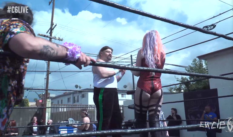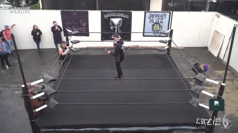 There’s Ron Voyage! An Escort Superhero! Vinnie Massaro! Some absolute bums! Jimmy Townsend has backpacked here from Australia. It’s fair to say there are a few mistakes out here but I’m having a blast. I can’t tell who most of the people are due to the microphone having water in it. Someone gets pinned and the producer misses it. It comes down to Vinnie Massaro and “Big” Al Crowley. Not Alan, as is misheard in the Discord, but Alice. Big Al gets a reversal and poor Vinnie gets lobbed out. This was terrible but, somehow, a delight. Really low, shit tier wrestling is wonderful.