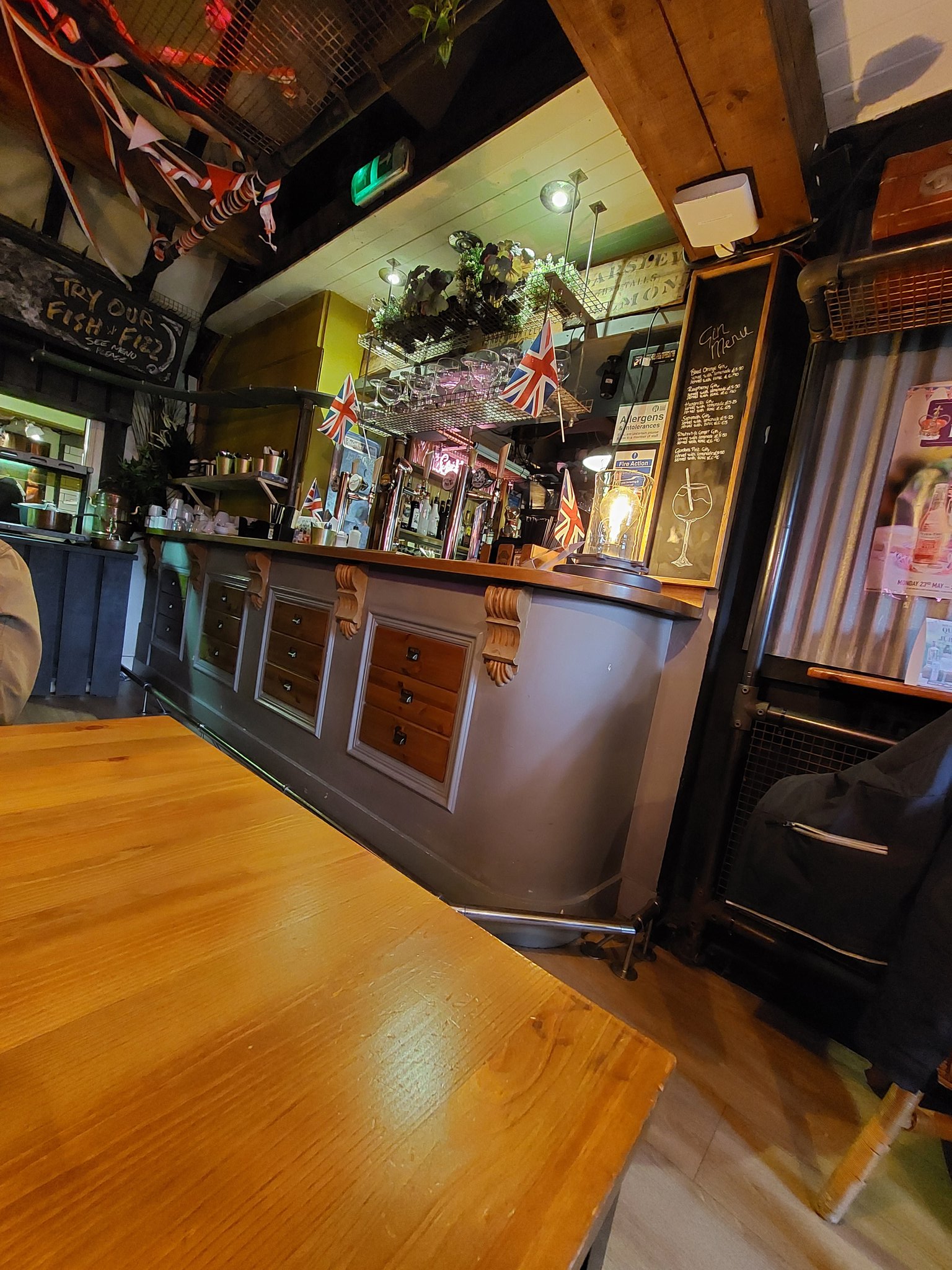We settled into the first one on the row; the Cock & Magpie, which feels like it belongs in London. A small central bar, which has a kitchen on the back of it and rooms on either side of it. The beer choice in here was notably different with prominent ales being the kind you can get anywhere like Shipyard and Camden Hells. I went with a Hobgoblin IPA, as it’s the only beer I’d not had on Untappd. It was ok but following the previous two pubs it didn’t really compare. This is for the tourists. Most people were eating and a load of people outside were eating fish and chips from the chippy next door. It’s bang on the river and I imagine at peak season it gets very busy in here. I liked it but could have loved it if they’d been more ambitious with the beer selection.