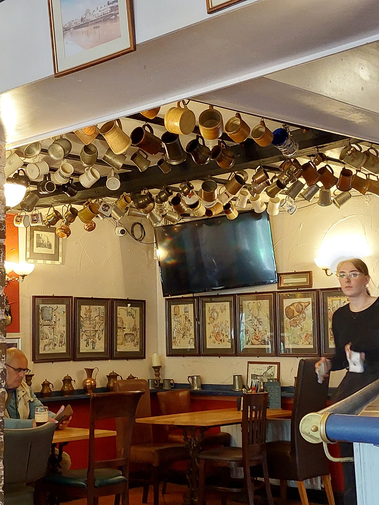 Apologies to the waitress for getting her in shot here but my camera was having a wobble after I’d been demonstrating the macro lens. This being the “Mug House” we have mugs hanging from the ceiling. I regretted ordering a full pint of Titanic Plum Porter because it prolonged our stay. The others clearly wanted to move on. Not the best experience we had all day and the table service is a bit weird considering the bar wasn’t busy. Either they’re stuck in Covid times or this is basically just a restaurant that I mistook for a pub.