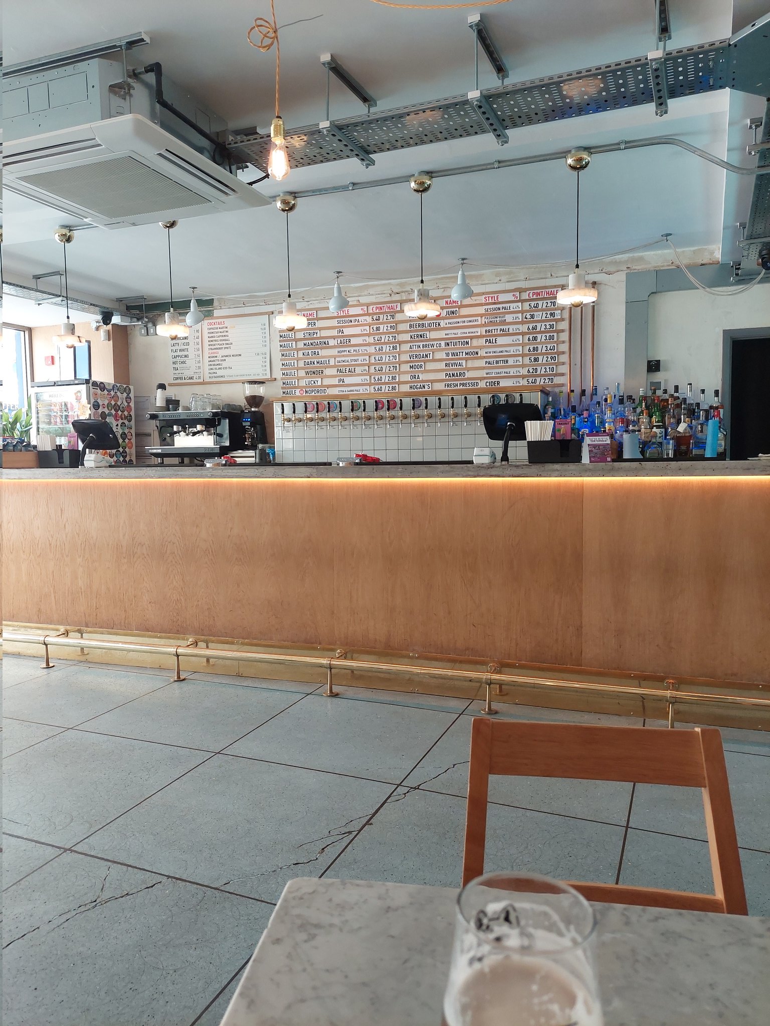 Somewhat the worst for wear now. My notes for this place are sketchy. I’ve dubbed it “much brighter”, which is true. It has big windows at the front and a load of tables. The space in here is truly shocking. Behind the bar are windows into the back of house so you can see the brewery. The brewery is Phipps. There are only four people in here and I have a truly wonderful time chatting to Phil and his wife at the bar.