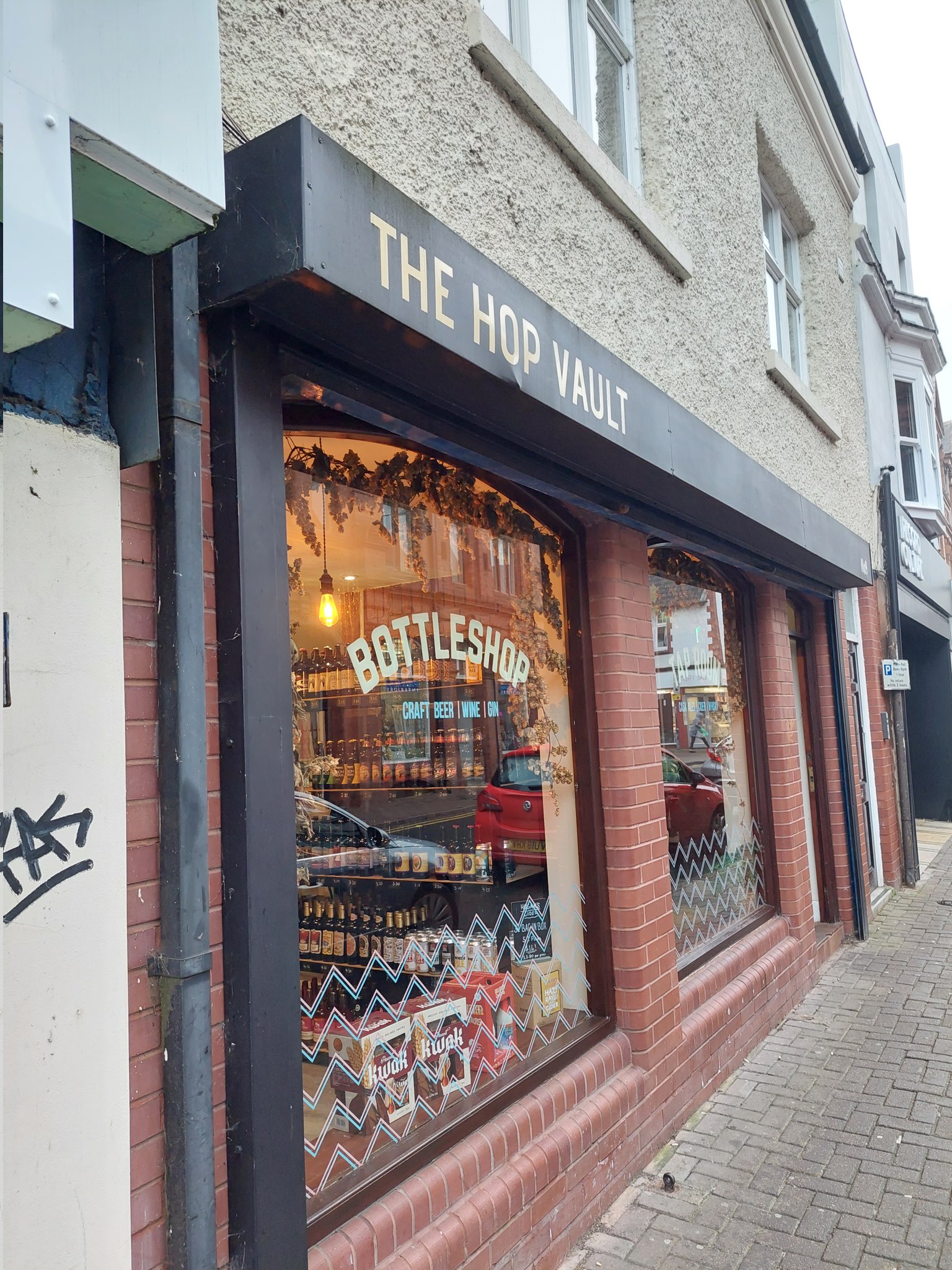 This was a change in gears. Only a short walk away but the other side of a main road and more central in town. It felt like half a mile and a hundred years. The Hop Vault is a modern tap room, down a side street. It has a huge array of bottles and cans available for takeout. We ended up getting some because the range was staggering. I couldn’t just leave with nothing. We couldn’t start here as they don’t open until 3pm. We arrived at 4pm and there were three staff on and only one punter.