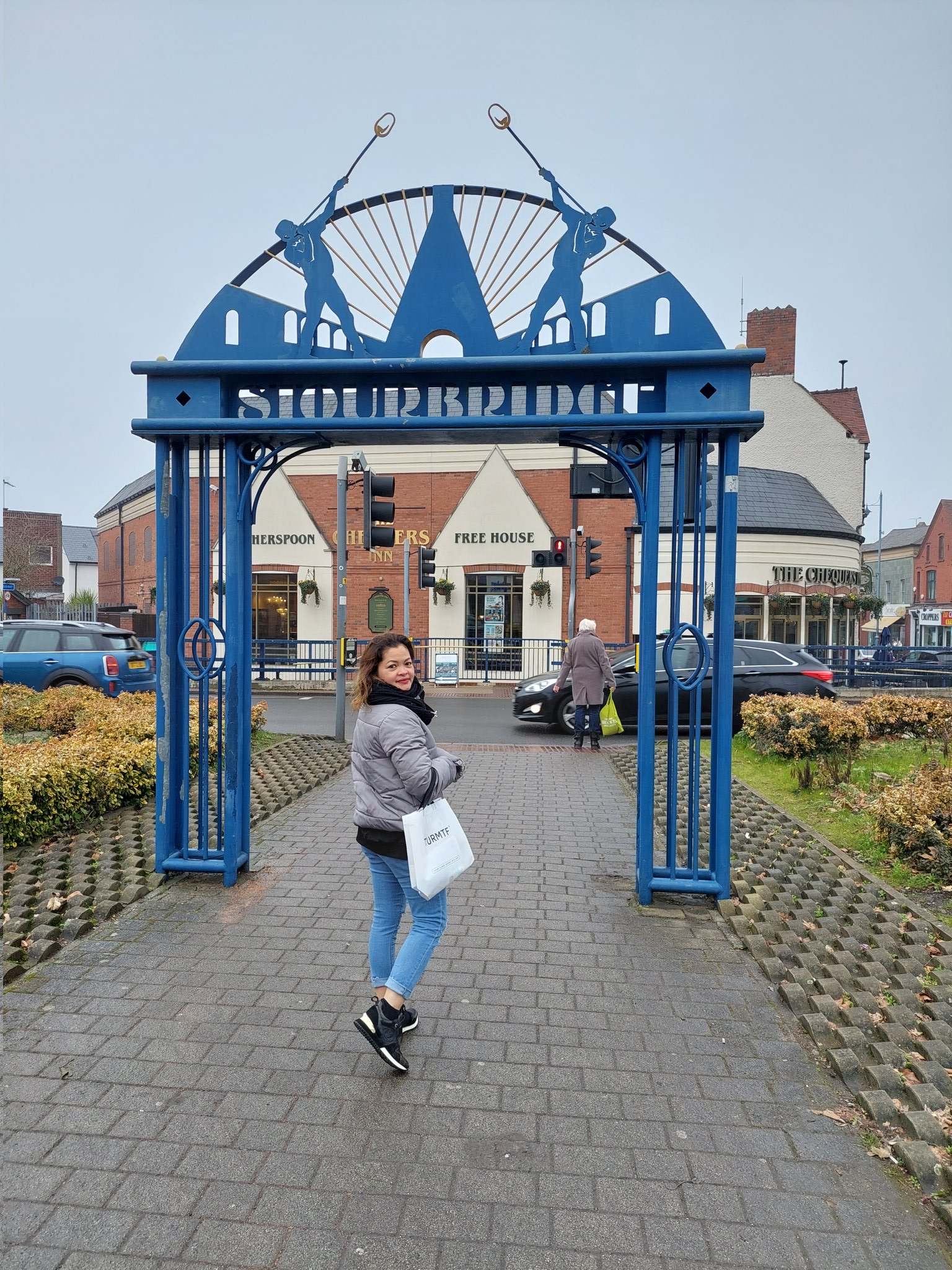 Normally, I’d assault this by taking a train into Stourbridge Junction and walking from there but Maria decided to drive (I’m sure a 30 minute wait for a connecting train in Droitwich had nothing to do with it). We parked up and headed in. Here we are (top) being welcomed into the sunny town centre of a thriving metropolis. Ahead of us is the local Spoons. That’s a no from me.