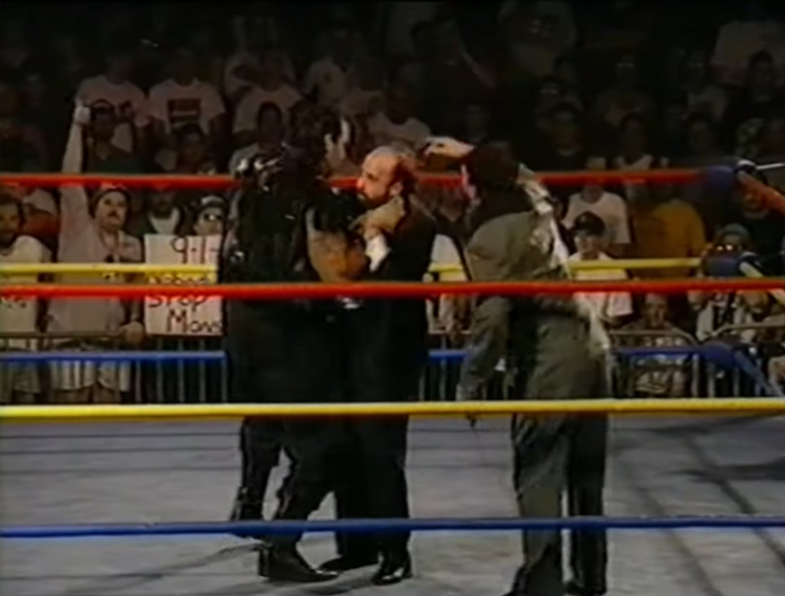 Video Control gives us footage of the Heyman vs. Funk feud. They’ve woven Bobby Eaton, Sabu and Arn Anderson into the feud. Heyman paid off Public Enemy to take out Terry during the WCW guest tag match at When World’s Collide and NOW…they’re facing off against Terry and his brother. Ideally Arn Anderson would have been involved here but obviously they can’t keep borrowing WCW talent anytime they like.