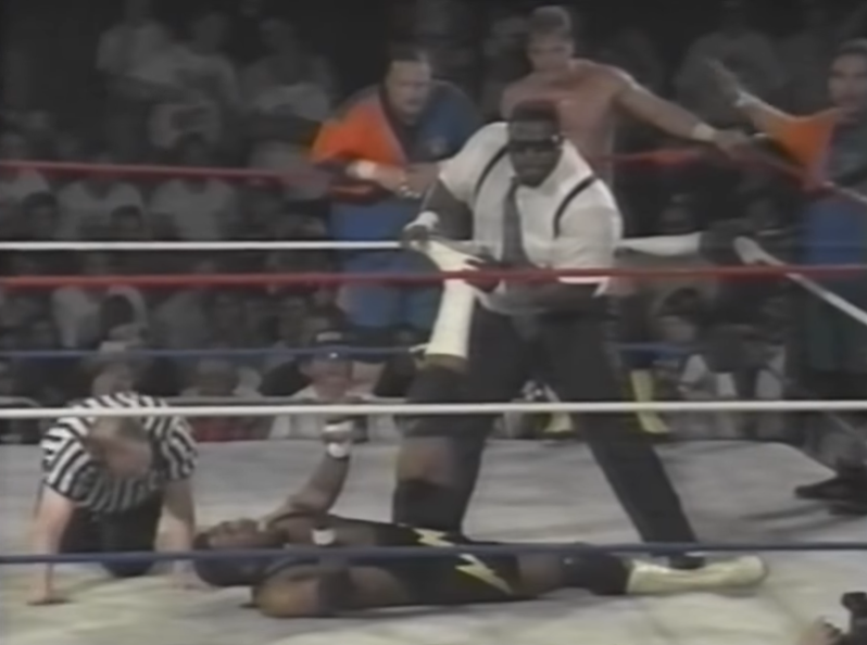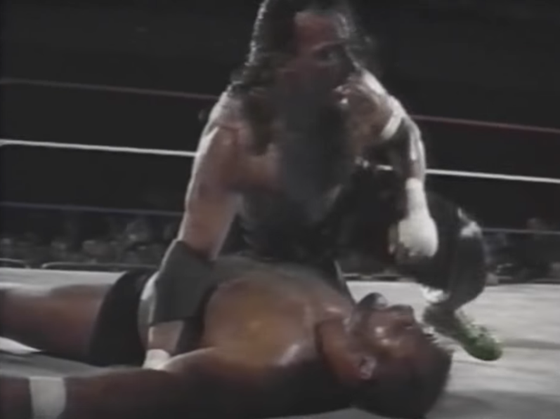 Sullivan politely hits Snuka with plunder all match. Snuka looks completely finished. Keeping in mind this was 1994 and he carried on wrestling until 2014. The angle here is that Sandman steals Sullivan’s valet Woman, who would be staying here, and Sullivan gets distracted and pinned. This match was terrible. Sullivan takes it out on Snuka’s manager Hunter Q Robbins by hitting him in the nuts repeatedly with a cane. ½*