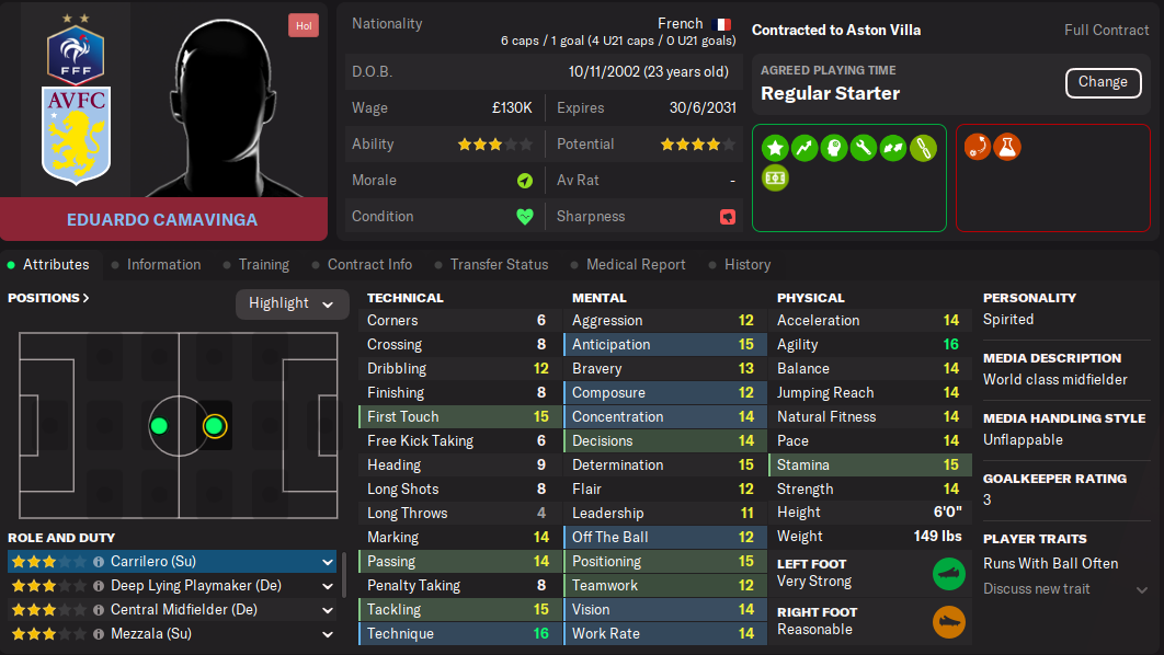 First things first. I left the last season needing a goalkeeper. Well, we’ve extended Andre Onana’s loan so that’s one less thing to worry about. Right back is somewhat of a concern still but we have Emerson Royal and Matty Cash along with Pablo Corti as one for the future (at 21, hmm) and James Simpson from Bristol City. The fans don’t like him but he’s good and homegrown. It would be fair to say I have no issues with squad depth in any position now.