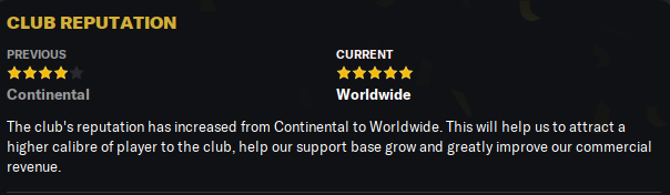 The board’s lack of ambition, something I called out at the start of the save, continues this year. They wanted us to finish “top half” after two straight years of qualifying for Champion’s League. I tried to change it but was told my ambitions were unacceptable. I had a five year plan to win the league and we’re in year three. The inability to move the board’s ambitions is annoying.