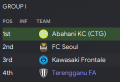 Just as I’m eulogising our season, this information comes into my possession. We’re still here baby! 12 points is enough to qualify as one of the best second place teams. The six best second placed teams qualify for the knockout phases. We’re going to play Yokohama Marinos! I’m happy to play a Japanese team because their league isn’t loaded and they’re not as good as they would be IRL. I won’t even be mentioning that game in this season review because it’s technically into next season for us! February to be exact. We’ve made it into the knockouts though, tremendous work. One of the top 16 teams in Asia.