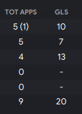 The season is barely 9 games old, and I get this little notification down the bottom. He got 46 in 38 games last season. If he stays fit, what numbers might we see this season? He’s averaging over two goals a game. I’m not fudging these figures, here’s the screenshot. 13 in FOUR in the Cup.