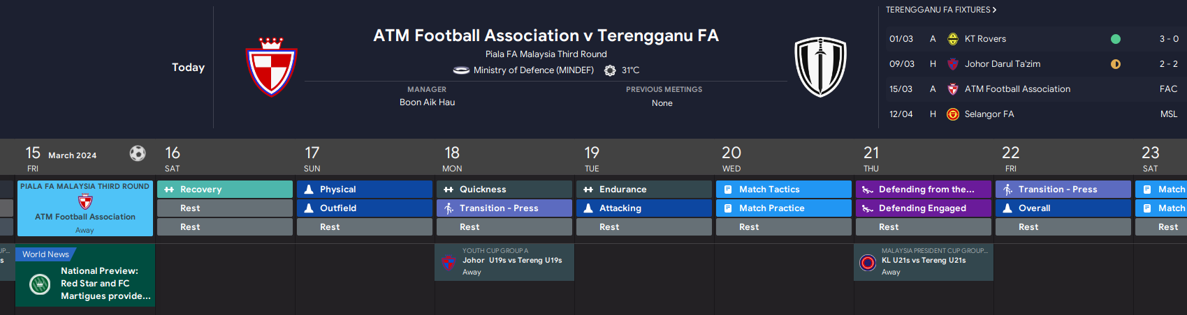 Also, speaking of money, when you’ve got none at all the transfer windows are very boring on FM. Literally months of waiting. Especially in Malaysia where no one really has any money apart from Johor. They could sign my entire team and ruin me if they wanted to. Total spend in the off season is £57k after two months. Not me, the entire league.