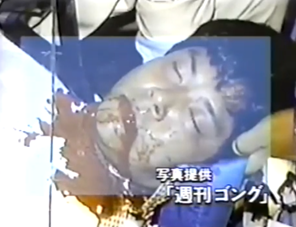 R5. Onita spends the entire time between rounds receiving attention. He’s fucked. Aoyagi mercilessly continues the assault. Onita gets kicked in the head, stays down and his corner throws the towel in. Everyone piles in and fighting continues!