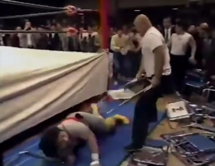 FMW’s chaotic in-ring style was ahead of its time in 1990. A lot of what you see here would become staples of hardcore/extreme promotions during the decade ahead. Did they go too far, too fast? I much preferred the matches Onita was having where they pretended to wrestle for a bit before the carnage kicked in. A lot of this is just dudes hitting each other with plunder. Whereas Onita’s bitchin’ 1989 stuff usually started out like an MMA style match and devolved into violence. Now we’re starting with chair shots, doing more chair shots and then more chair shots. You can see where it’s going, from a modern perspective, and that definitely takes the edge off my excitement.