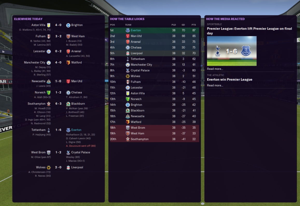 After two seasons a dramatic 6-1 win at Spurs saw us pip Man Utd to the title and I’d already accomplished my dream of steering my boyhood club to the summit of English football. Was the game too easy? Richarlison scored 49 goals this season. 49! There was also a rumour that saves that started on the beta may be corrupted in some way and it was best to move on with your life. I did so, content that I’d won the title with Everton and also the Carabao and Europa League. Thus making me the most successful manager since Howard Kendall. Suck on that Carlo Ancelotti!