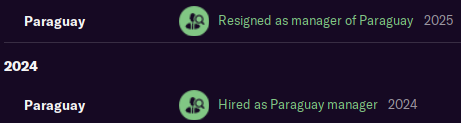 So, I took the job as Paraguayan national manager and realised after a week of having the job that I had absolutely no interest in being the Paraguayan national manager. The week was between Christmas and New Year so it looks like I was there for ages, but it was literally a week.