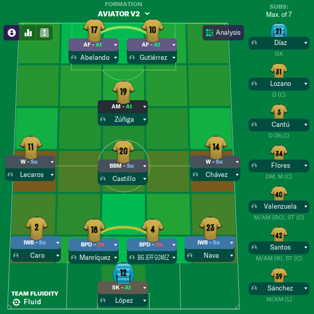 These two games are so close together, I’m glad we’re by far the better team. It allows us to bring in Lozano at centre back. He’s bad but capable and ok alongside BIG JEFF GOMEZ. Guerra comes in at left back, which means we lose the long throws but we should be good enough without them. Zuniga isn’t fit but I’ll start him and switch formations at half time.
