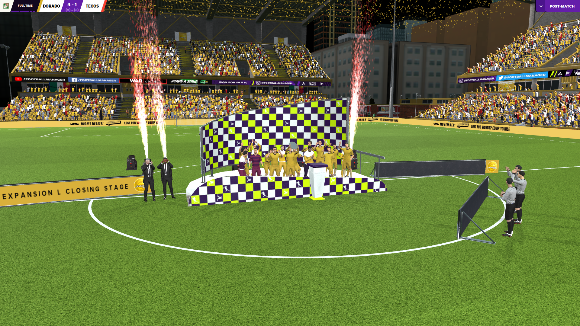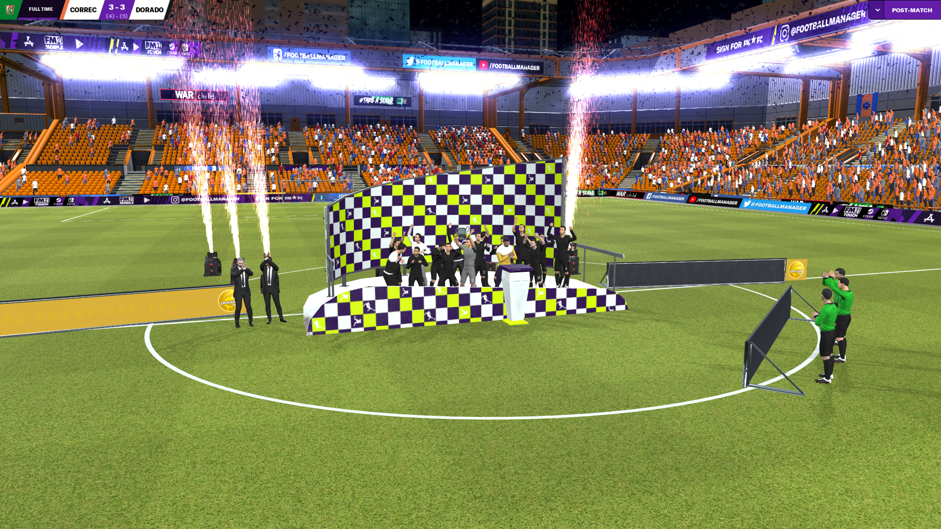 Second half. Two minutes in. Near post corner. BIG JEFF GOMEZ (ALL CAPS). 3-2. I take a risk and bring on Abelando. It pays off as Gutierrez sneaks in for 4-2. 85 minutes gone and it’s 4-3, Martinez after a Manriquez error. A minute later the nerves are settled though. A long throw is volleyed into the net in spectacular fashion by Chavez. These lads were pre-season favourites but never really showed any quality until now. I’m slightly lucky to get past them.