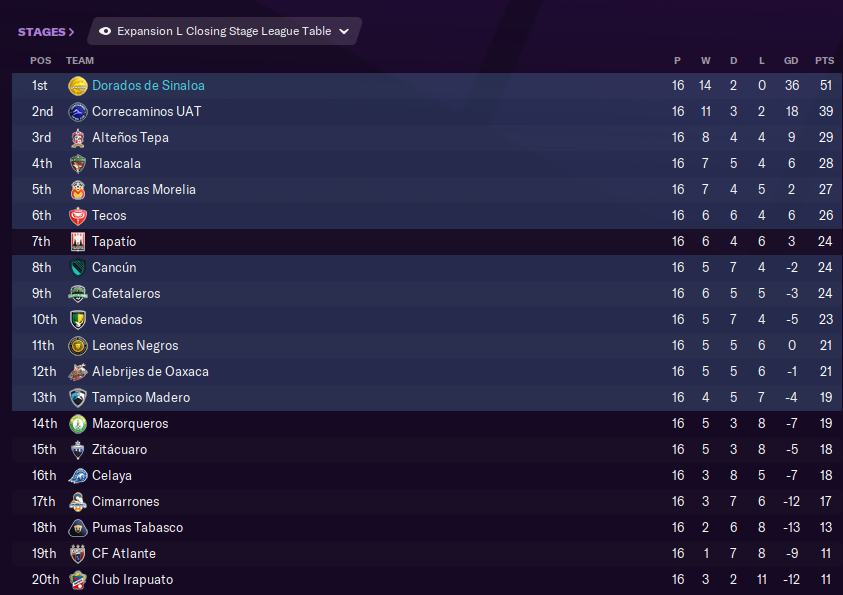 Entering the final month of the season Dorados have only dropped points twice. A draw with second placed Correcaminos, the only other good team in the league, and a shambolic game against Leones Negros where somehow we only hit the target once with 20 shots.