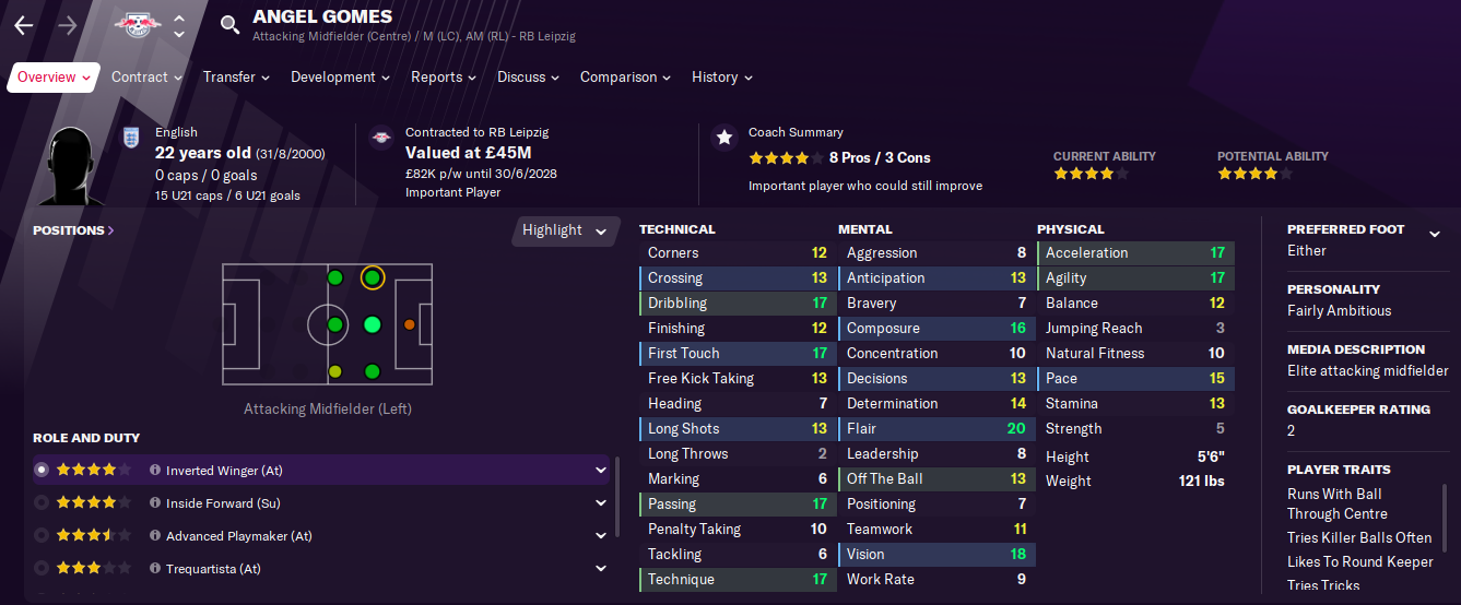 22 years old. 20 flair. All the exciting attributes. Loads of fun player traits. This guy is going to be amazing.